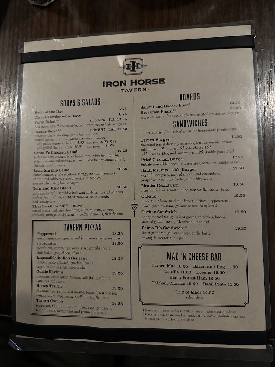 Iron Horse Tavern Folsom Menu